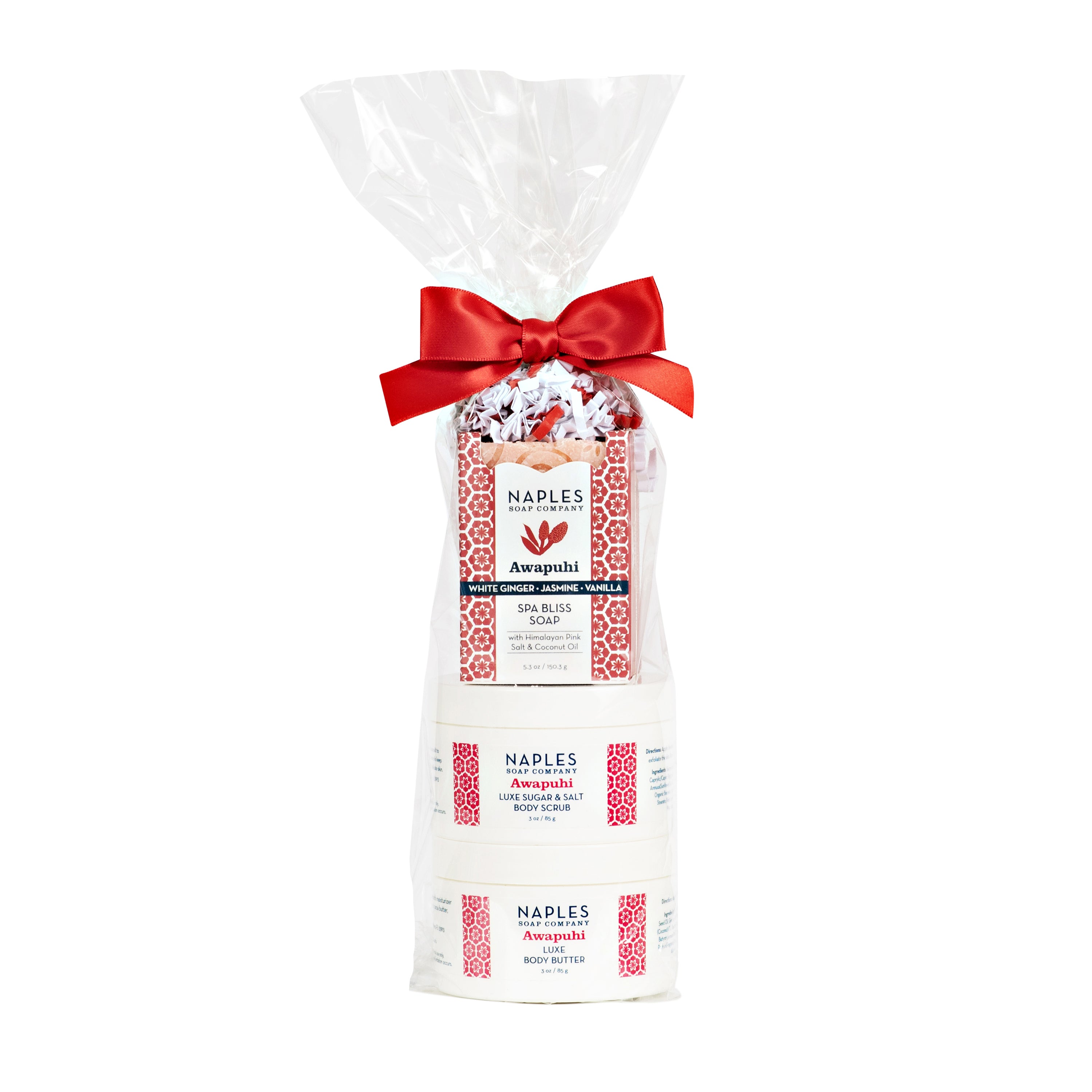What's Inside: Awapuhi Luxe Body Butter 3 oz, Awapuhi Luxe Sugar & Salt Body Scrub 3 oz, Awapuhi Spa Bliss Soap