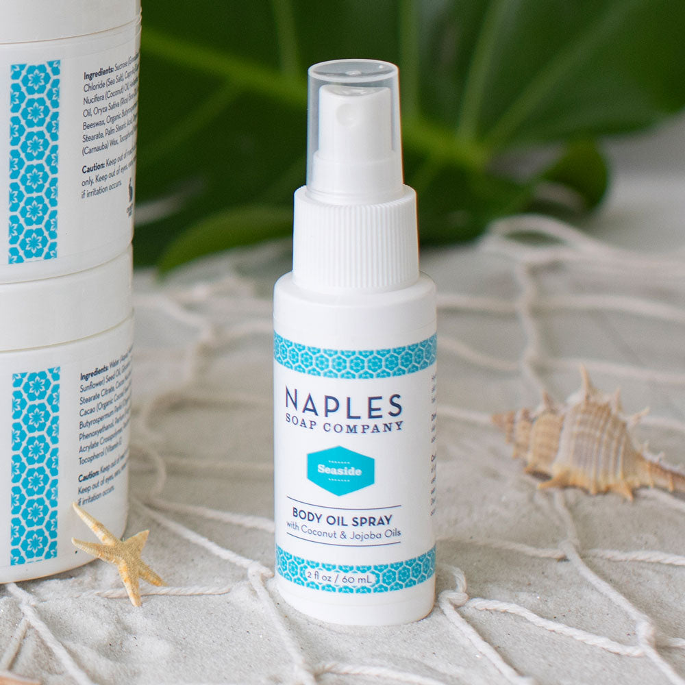 Escape to the coast with our lightweight, travel-sized body oil spray to quench your dry skin. Infused with nourishing botanical oils, this body oil leaves you feeling silky-smooth while the fresh scent of jasmine and mandarin orange whisk you away to a breezy ocean getaway. Just a spritz, and you’re seaside in spirit—anytime, anywhere!