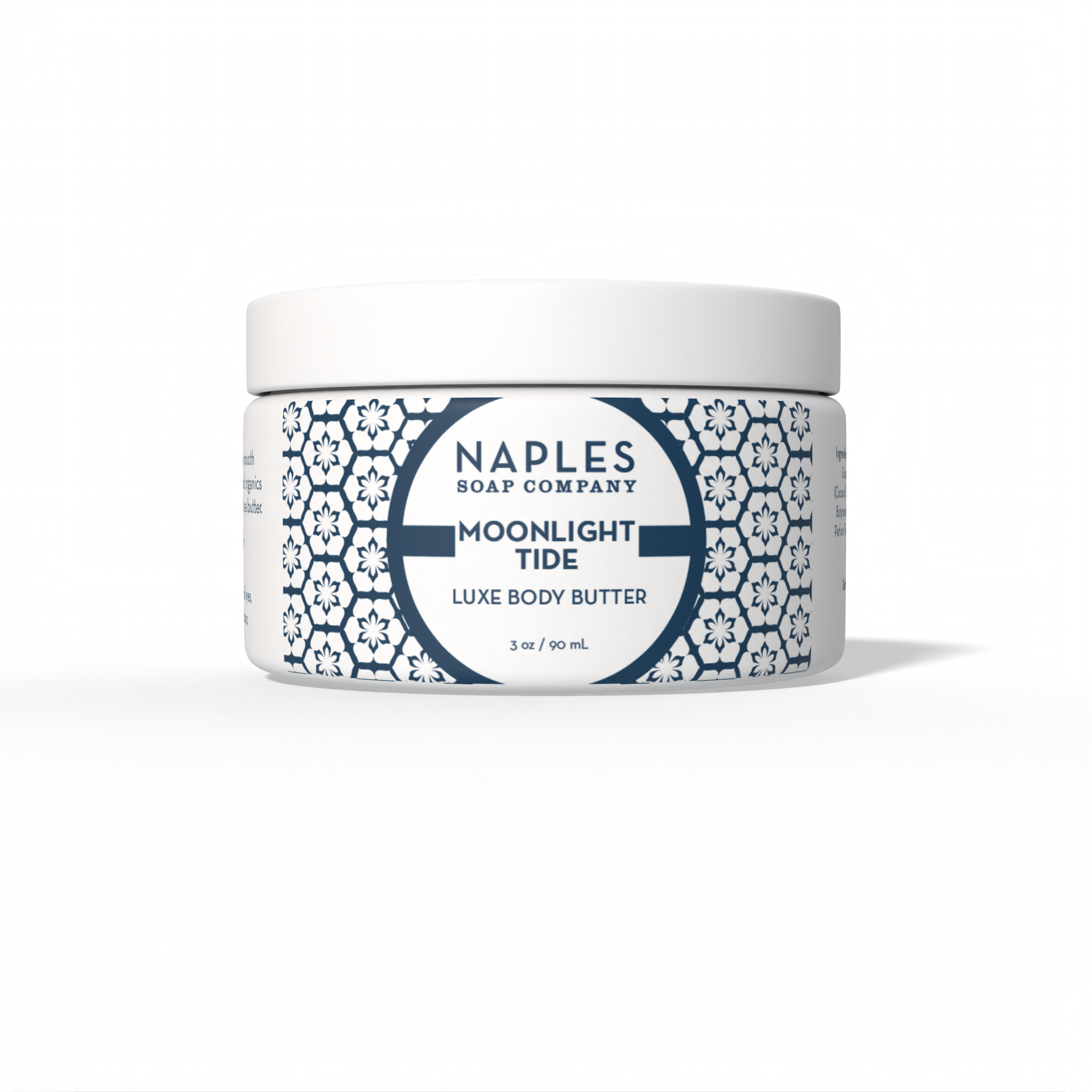 Wrap yourself in the gentle embrace of our Moonlight Tide Body Butter, where rich, creamy organic shea butter, nourishing coconut oil, and organic sunflower seed oil melt into your skin, leaving it irresistibly soft. The scent incorporates hints of sparkling ozone and zesty grapefruit dance with warm sandalwood, evoking the serene hush of moonlight over the ocean waves. Let this rich and creamy body butter transport you to a tranquil tide, where your skin glows and your senses drift into pure coastal bliss.